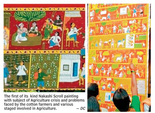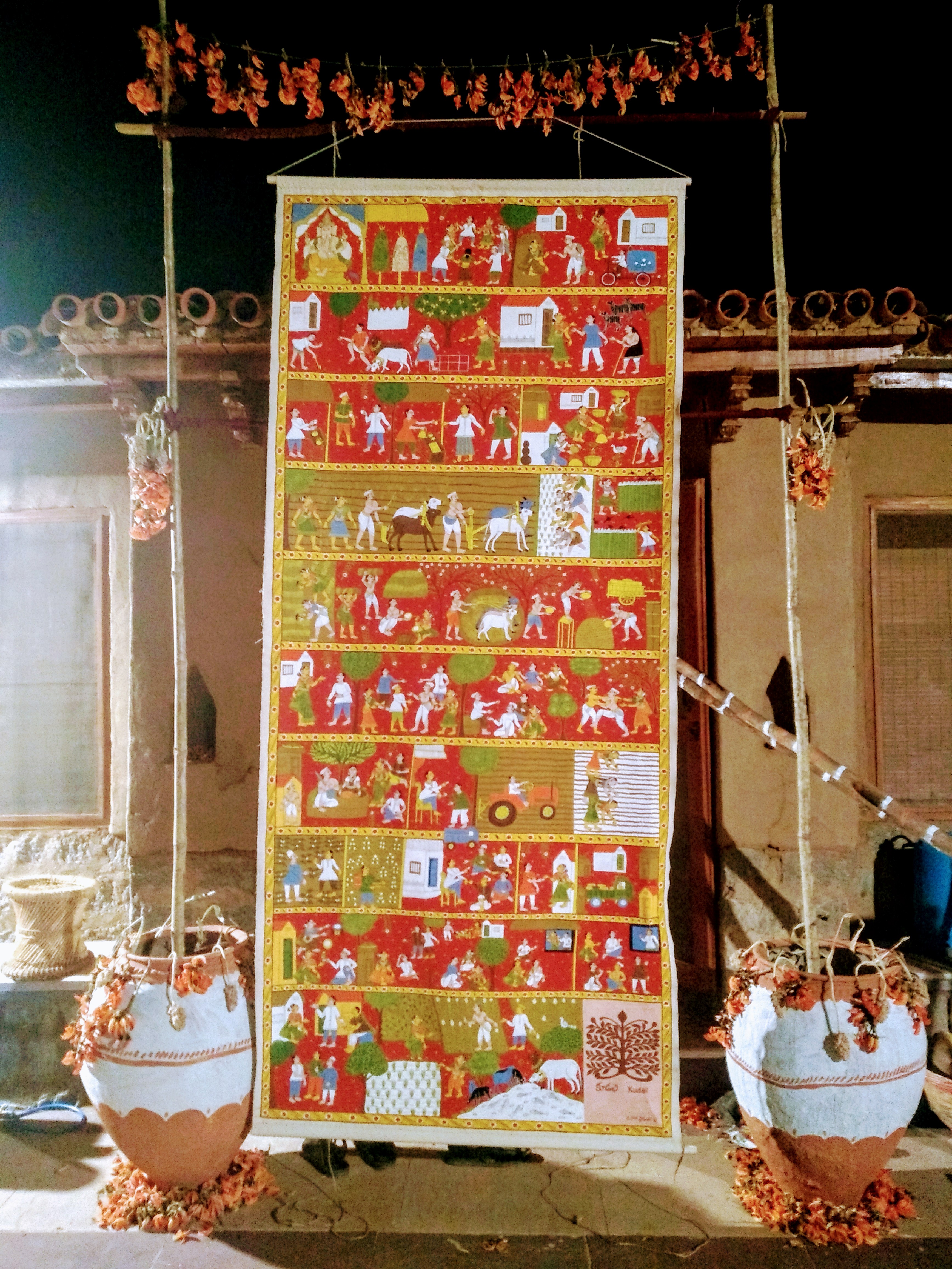 2018-2019 : Led a project with Nakshi artists, traditional artisans from Cheriyala village, Telangana India to curate the production of a 11 ft scroll depicting an anti-caste story of food sovereignty; as part of a project anchored by Yakshi, Secunderabad.